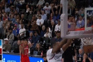 想得太简单!阿门篮下捡板想直接扣被巴洛大帽按下
