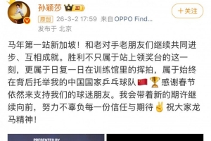 马年第一站新加坡!和老对手老朋友们继续共同进步、互相成就。胜利不只属于站上领奖台的这一刻,更属于日复一日在训练馆里的挥拍,属于始终在背后托举我的中国国家乒乓球队。
