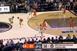 想得太简单!阿门篮下捡板想直接扣被巴洛大帽按下