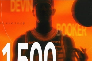 体育资讯3月4日讯 NBA常规赛,太阳对阵国王,布克已经投进3记三分。