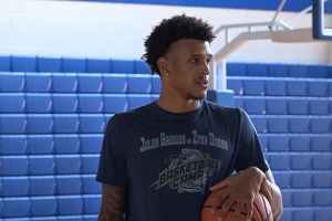 布里奇斯上赛季曾和太阳签下双向合同球员,他出战过8场NBA比赛,场均出场3.8分钟,有1.1分0.5篮板的数据
