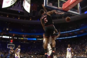 夺回球权!阿门突破被德拉蒙德身后掏球出界 76人挑战成功