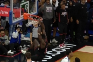 夺回球权!阿门突破被德拉蒙德身后掏球出界 76人挑战成功