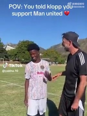 克洛普开玩笑地安慰一名年轻的曼联球迷:
