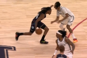想得太简单!阿门篮下捡板想直接扣被巴洛大帽按下