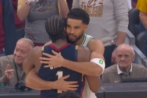 比赛期间哈登和刚刚复出的塔图姆进行了简短交流,当被问到两人说了什么时,哈登说:“我只是告诉他,当你看到一个如此年轻、如此有天赋,并且已经取得了这么大成功、赢得了总冠军的球员,然后突然遇到了挫折,他还能保持着‘什么都无法阻挡我’的心态回归,复出第一场就打得很好,今晚也打得很好,这本身就是一种鼓舞。”
