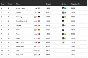 美国队、牙买加队和德国队分居前三晋级决赛,预赛第四至第八位分别是英国队、加拿大队、西班牙队、法国队和波兰队。