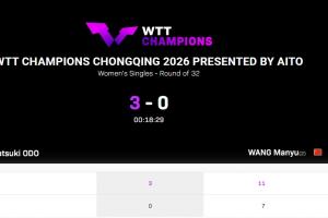 体育资讯03月10日讯 WTT重庆冠军赛,女单1/16决赛王曼昱VS大藤沙月。