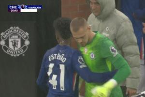 体育资讯09月21日讯 英超第5轮,曼联主场迎战切尔西,开场第4分钟, 切尔西守门员桑切斯吃到红牌,切尔西换人调整。埃斯特旺和内托被换下,约根森和阿达拉比奥尤上场。