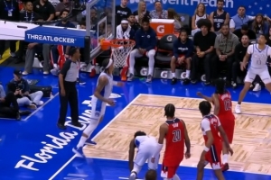 这变态的身体素质!阿门直杀篮下暴起隔扣没成功 空中停顿数秒