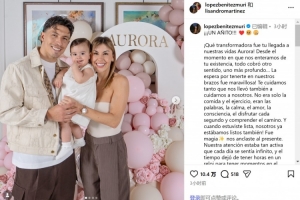 体育资讯3月15日讯 3月14日是曼联后卫利桑德罗·马丁内斯女儿奥罗拉1岁生日。在社交媒体上,阿根廷铁汉展示出了柔情一面,给女儿送上了爱的告白。