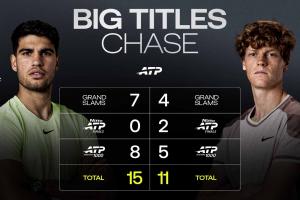 作为赛事的头号和二号种子,阿尔卡拉斯和辛纳都要到决赛才能会师,但本赛季两人参加3站赛事,均未能做到会师决赛,而两人上赛季屡屡会师决赛。去年罗马公开赛开始到年终总决赛为止,辛纳和阿尔卡拉斯在两人共同参加的7项赛事中,有6项在决赛中相遇。