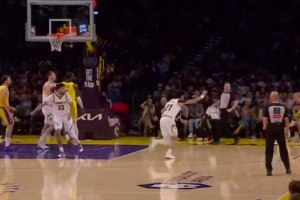 想得太简单!阿门篮下捡板想直接扣被巴洛大帽按下