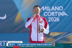 体育资讯3月15日讯 米兰冬残奥会中国体育代表团宣布,冬季两项运动员蔡佳云和轮椅冰壶运动员王蒙将担任闭幕式中国体育代表团旗手。