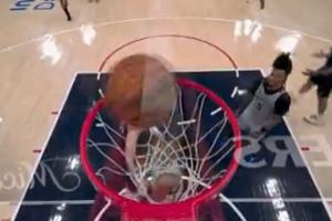 这变态的身体素质!阿门直杀篮下暴起隔扣没成功 空中停顿数秒