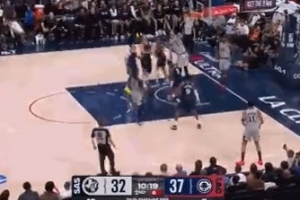 你学艾顿?卡佩拉冲击篮筐 面对空篮但上丢了