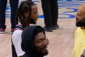 夺回球权!阿门突破被德拉蒙德身后掏球出界 76人挑战成功