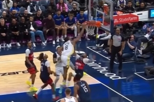 想得太简单!阿门篮下捡板想直接扣被巴洛大帽按下
