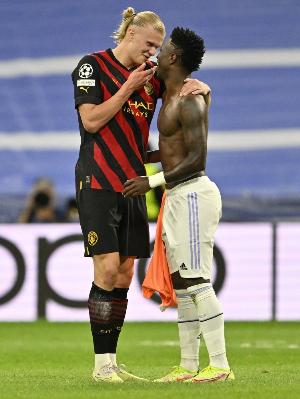 体育资讯3月17日讯 欧冠1/8决赛次回合,皇马将前往客场挑战曼城。首回合的比赛,皇马在伯纳乌取得3-0的完胜,这让西甲豪门一只脚踏入了1/4决赛。本场比赛之前,《马卡报》对两队首发阵容进行了预测,维尼修斯对决哈兰德,姆巴佩替补,小将皮塔奇出战。