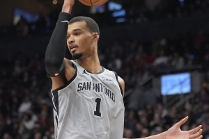本场比赛早早失去悬念,文班仅出战22分钟14投7中,三分7中2,罚球2中2砍下18分8篮板3助攻1盖帽,正负值+23。