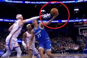 想得太简单!阿门篮下捡板想直接扣被巴洛大帽按下