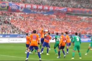 中超联赛第2轮,山东泰山VS北京国安。比赛第34分钟,北京国安队员在对方罚球区内顶球后,球疑似接触山东泰山8号队员手臂。裁判员未判手球犯规,VAR未介入。