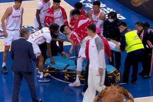 本场比赛,深圳男篮球员冯熙瑞在防守时空中对抗后重摔在地,随后被担架直接抬走。