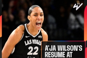 WNBA生涯至今,阿贾-威尔逊4次常规赛MVP,2个总冠军,7次入选全明星,两个得分王,5个盖帽王,3次年度最佳防守球员,还是2018年最佳新秀,堪称荣誉收割机。