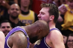 谈到本场对于东契奇拿下40分准三双以及连进关键球,詹姆斯说:“他整个赛季都是这么为我们打球的。过去一年里他都处于极佳的节奏之中,自从赛季开始就是如此。我们就是努力支持他,在防线后方支援他,当他突破时做好准备,做好接球就投的准备,积极从后方空切。不过,他自己打进了多记关键球,那记左侧翼的后撤步三分真是关键,太强了。”