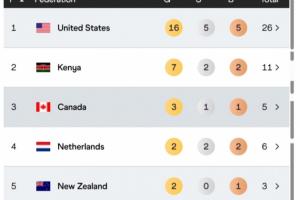 2.肯尼亚 7金2银2铜 共11枚奖牌