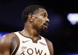 想得太简单!阿门篮下捡板想直接扣被巴洛大帽按下