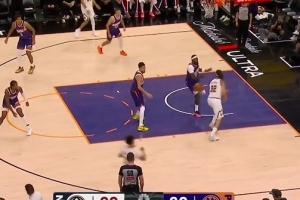 超高难度帅球!埃奇库姆弧顶迎着申京&小史密斯扑防轰压哨长两分