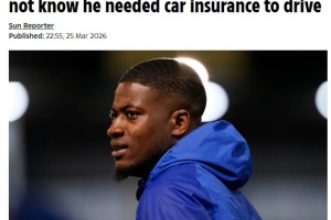 效力于英乙布里斯托尔流浪的25岁中场球员克林顿·莫拉,去年11月在伦敦南部的萨瑟克区驾驶他的奥迪SQ8时被拦下。他表示自己此前大部分驾驶经历中,使用的都是由赞助商提供并投保的车辆。