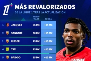 体育资讯3月28日讯 德国转会市场更新法甲球员身价,并列出了法甲球员身价上涨排名,热雷米·雅凯+3500万欧居首。