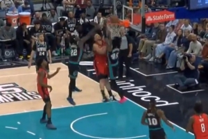 想得太简单!阿门篮下捡板想直接扣被巴洛大帽按下