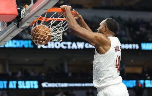 想得太简单!阿门篮下捡板想直接扣被巴洛大帽按下