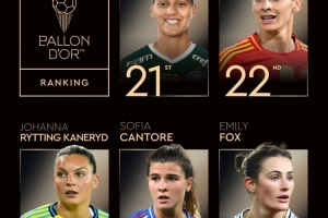 体育资讯9月22日讯 2025女足金球奖第21-25名公布: