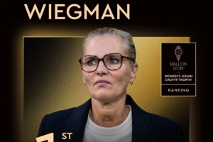 体育资讯9月23日讯 2025年金球奖颁奖典礼正在进行,英格兰女足主帅魏格曼女足克鲁伊夫奖,即年度最佳女足教练奖。