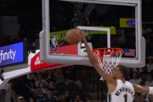 想得太简单!阿门篮下捡板想直接扣被巴洛大帽按下