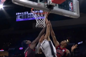想得太简单!阿门篮下捡板想直接扣被巴洛大帽按下
