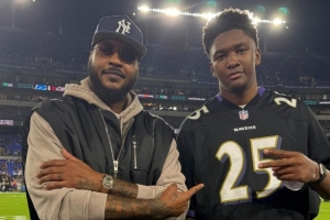 体育资讯9月23日讯 在今天的一场NFL比赛中,巴尔的摩乌鸦主场30-38不敌底特律雄狮。本场比赛,作为巴尔的摩老乡的安东尼还有鹈鹕新秀奎因都来到现场看球。