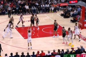 超高难度帅球!埃奇库姆弧顶迎着申京&小史密斯扑防轰压哨长两分