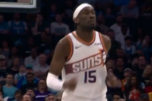 想得太简单!阿门篮下捡板想直接扣被巴洛大帽按下