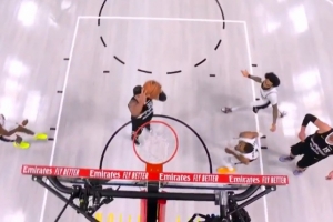 这变态的身体素质!阿门直杀篮下暴起隔扣没成功 空中停顿数秒