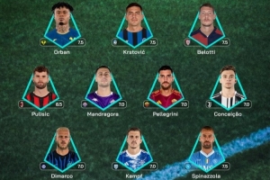 体育资讯9月23日讯 意甲官方公布了第4轮最佳阵容,普利西奇、孔塞桑、迪马尔科在列。