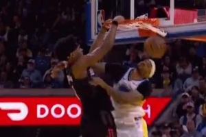 想得太简单!阿门篮下捡板想直接扣被巴洛大帽按下