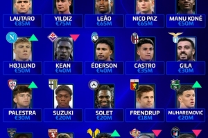 体育资讯4月7日讯 德国转会市场盘点了意甲各队身价最高球员,国米队长劳塔罗8500万欧,尤文边锋伊尔迪兹7500万欧。
