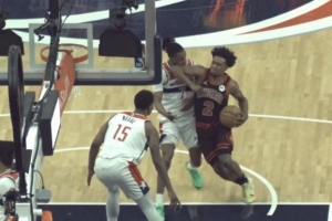 想得太简单!阿门篮下捡板想直接扣被巴洛大帽按下