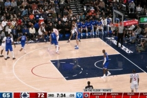 夺回球权!阿门突破被德拉蒙德身后掏球出界 76人挑战成功