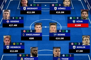 后卫:海因里希(多特→佛罗伦萨,1260万欧)、吕迪格(斯图加特→罗马,1300万欧)、佳夫(沙尔克→米兰,1280万欧)、科勒尔(拜仁→尤文,750万欧)
